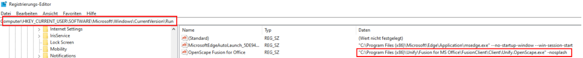 A security scan of a customer's laptop revealed that the OpenScape for MS Office software was installed with the Plantronics Hub software. A registry entry was found which ensures that OpenScape Fusion is automatically launched when a user logs in.